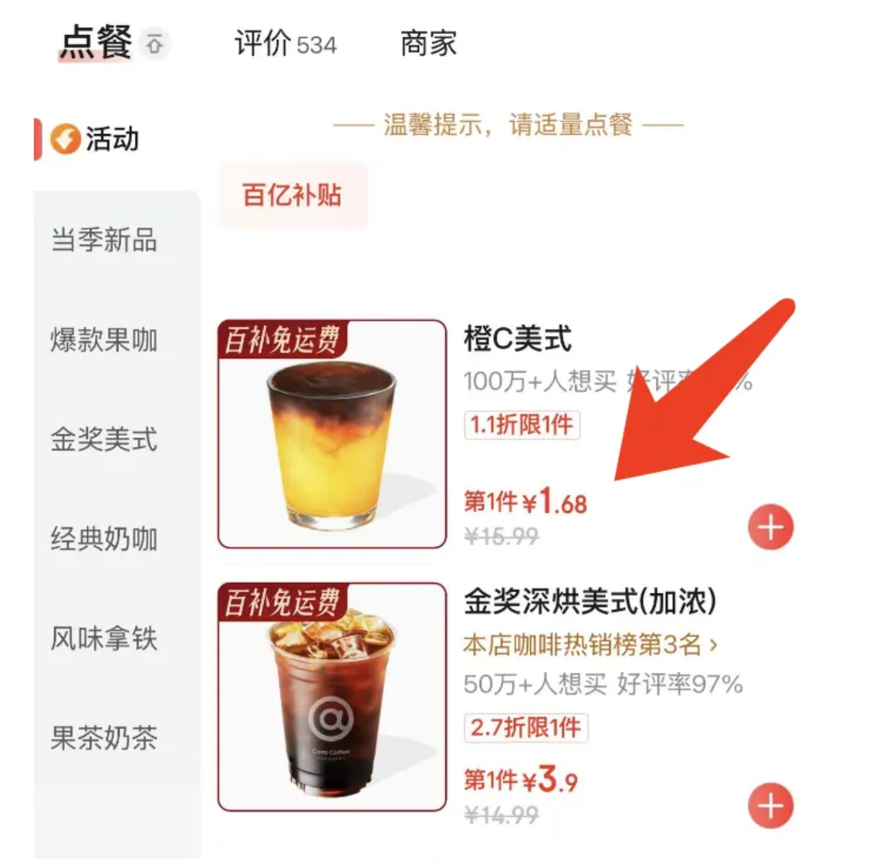 今年4月,京東外賣正式上線百億補貼,通過“全民補貼+爆品直降”的雙重機制高調入局外賣戰場,為爭奪市場份額,各大平台紛紛跟進加碼補貼力度,咖啡外賣市場由此迎來了新一輪白熱化的價格戰。