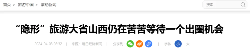 就在2024年4月,文旅中國還發文章説,旅遊大省山西還在苦等一個出圈機會。