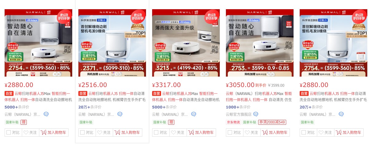 打開各大電商官網即能發現,雲鯨J5在國家補貼後售價下探至2600元水平,較其旗艦款逍遙002幾近腰斬過半;行業均價從2019年的2000元檔位跌至2025年的1500元區間,企業不得不面臨“增量不增利”的困境。