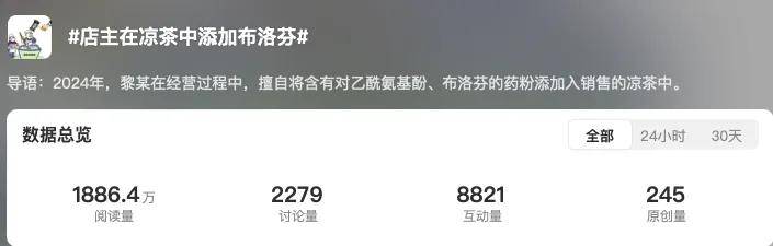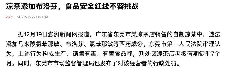 比如最近的一個熱搜話題——店主在涼茶中添加布洛芬……