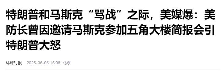 這不是我編的啊,美國大西洋月刊等媒體都爆料説,美國國防部長曾因邀請馬斯克參加五角大樓簡報會,引得特朗普勃然大怒。