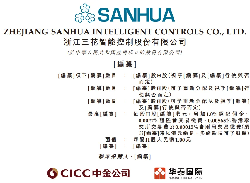 此前,三花智控已通過港交所主板上市聆訊,中金公司、華泰國際為聯席保薦人。