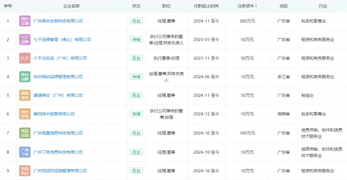 此外,調查還發現抖音平台的彈動官方旗艦店存在諸多複雜的關聯關係。該旗艦店的認證企業為青島艾本生物科技有限公司,它是青島北極光生物科技有限公司的全資子公司,其股東高菊錦和羅麗淋曾是廣州如霜化妝品有限公司的重要股東,於2023年11月16日退股。而彈動洗髮水的備案人嘻道美妝(廣州)有限公司,其股東廣州聞央生物科技有限公司的股東邱超華,曾是廣州如霜的監事,2025年5月22日卸任,並且邱超華還在多家公司擔任董高監或法定代表人,包括杭州彈動品牌管理有限公司。