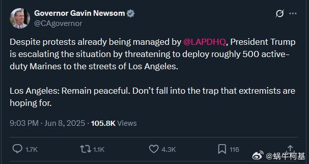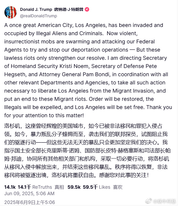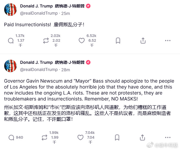 洛杉磯騷亂開始直奔主題了,特朗普譴責暴徒是被民主黨收買的