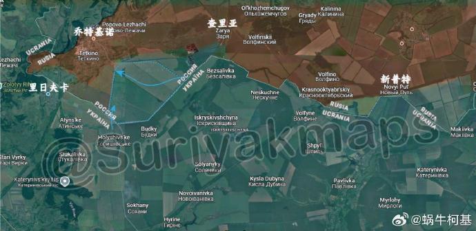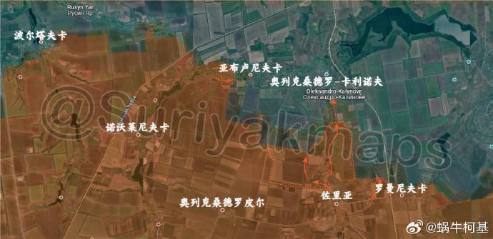 5、奧切列季涅:俄軍控制了羅曼尼夫卡以西的倉庫及其郊區,並進一步向北推進,成功進入了奧列克桑德羅-卡利諾夫的第一批房屋。此外,俄軍還向亞布盧尼夫卡推進,並佔領了該村40%。