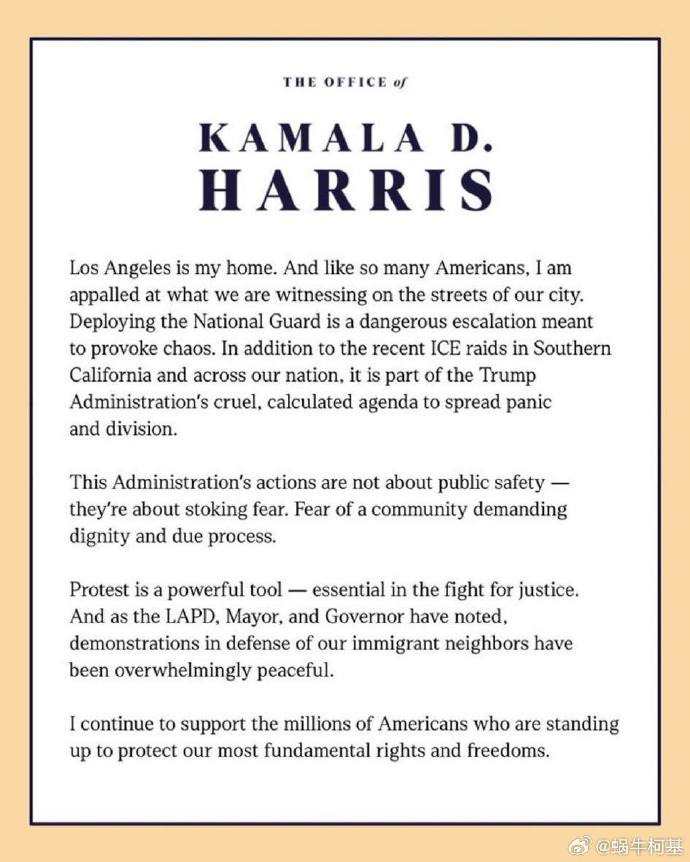 自稱失業的哈哈姐開始刷存在感,表示特朗普在散播恐慌和分裂,抗議是強有力的工具,在爭取正義的鬥爭中至關重要,正如LAPD、LA市長、CA州長指出的,這些捍衞移民權利的行動是和平的,哈哈未來將繼續支持數百萬美國人挺身而出保護最基本的權利和自由!