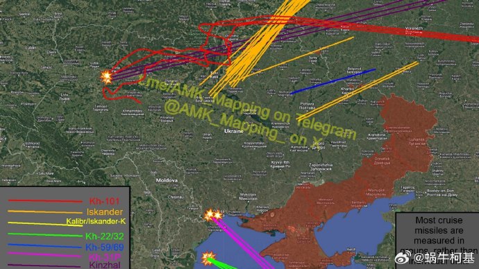 經統計,今天俄羅斯向烏克蘭發射了33枚導彈: