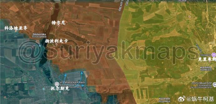 2、紅利曼:烏克蘭軍隊控制了托爾斯克北部,並重新佔領了該村東北的新陣地。