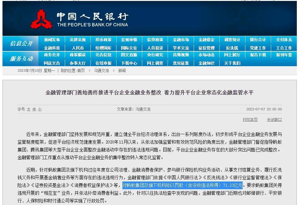 隨後的整頓愈發深入,螞蟻集團被要求整改成為“金融控股公司”,其消費信貸產品“花唄”“借唄”被納入央行徵信,金融業務須接受更嚴格的風控監管。2023年7月,監管部門對螞蟻集團處以71.23億元罰款,標誌着整改階段的結束,也彰顯出有關部門對金融科技平台的全面規制態勢。
