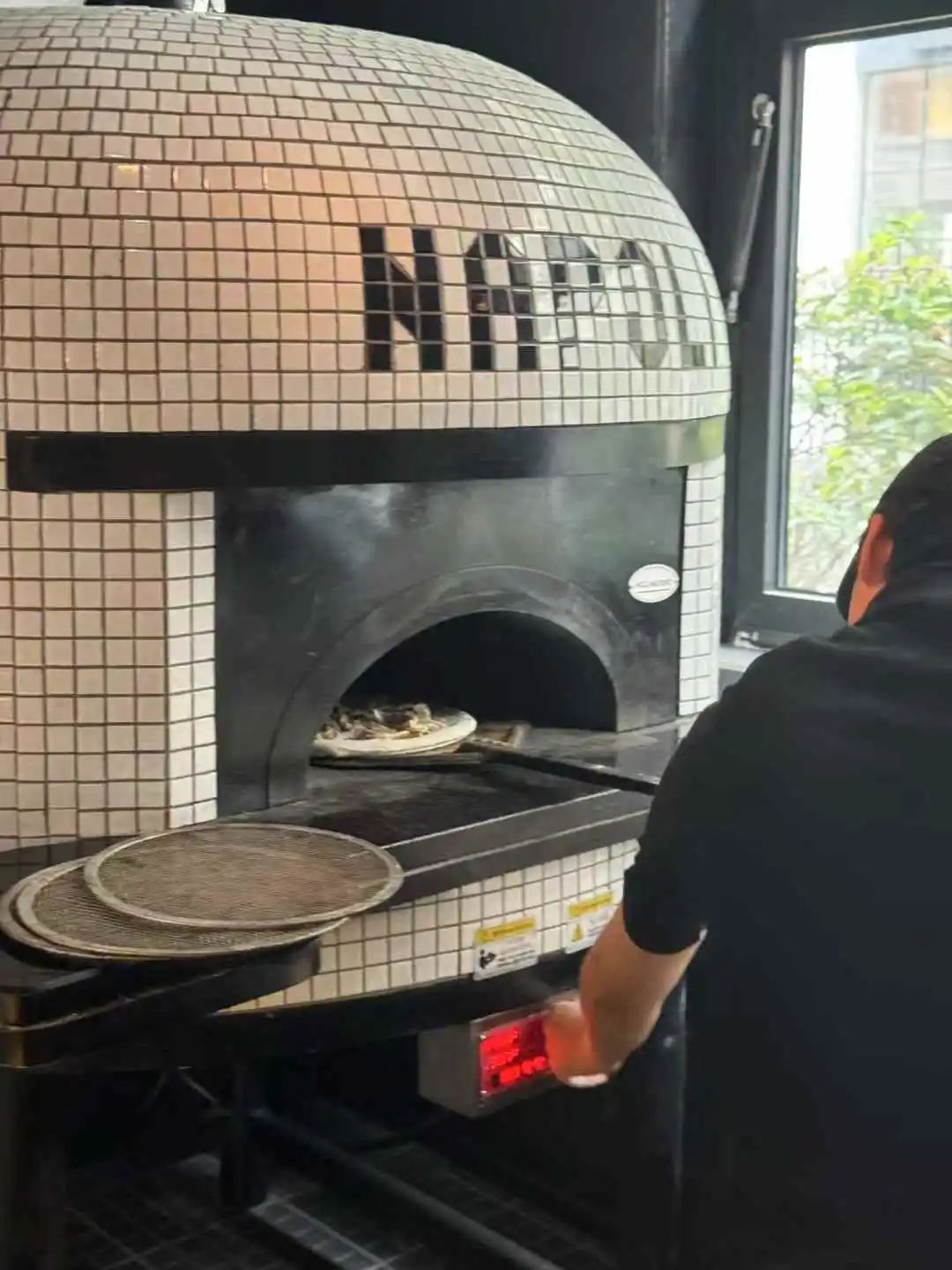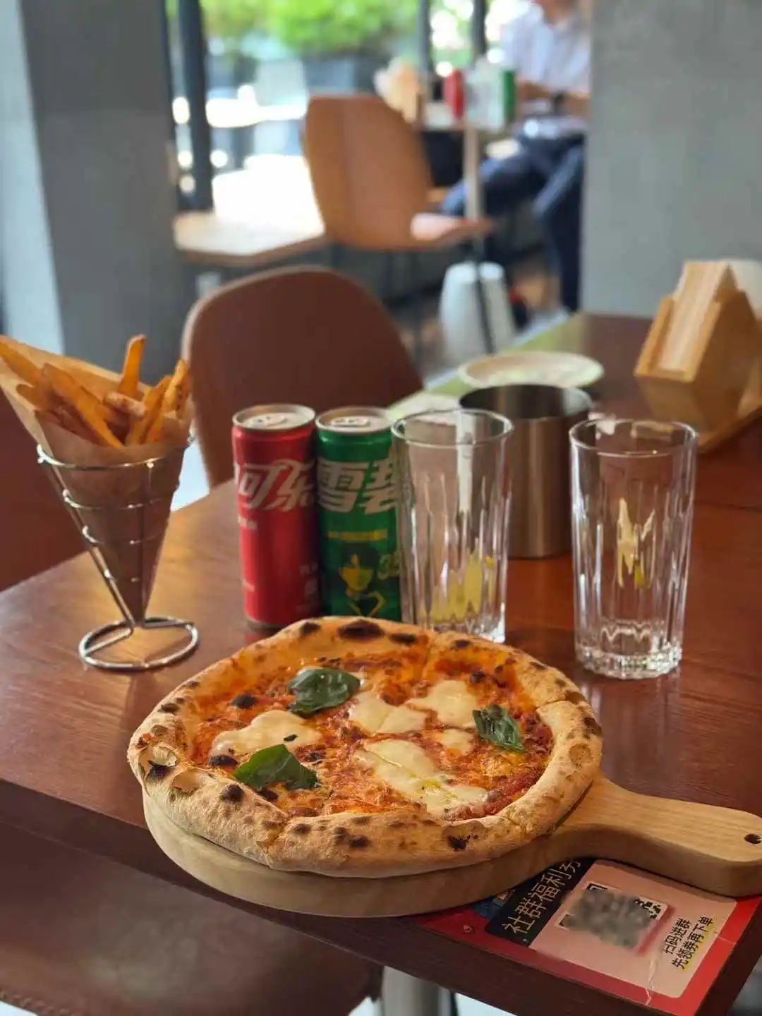 關鍵這比薩還不是預製的,是現做現烤現吃的。店裏還有專門用來烤比薩的石爐。正宗那不勒斯比薩,烤出來比必勝客好吃多了。