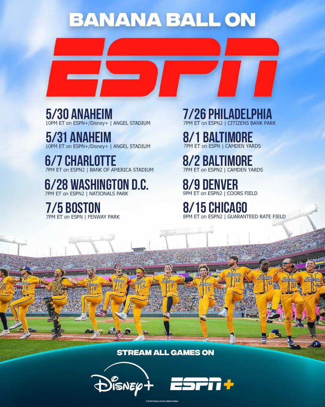 今年4月,ESPN宣佈直播10場香蕉隊的比賽——這支「娛樂化」球隊正式登上美國體育內容的主流舞台。