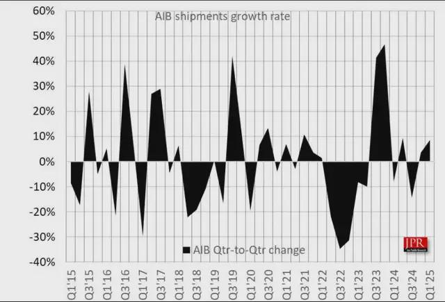 根據Jon Peddie Research 的數據, 2025 年第一季度,專用桌面顯卡的總銷量達到920 萬台,同比增長和環比增長均超過 8%。儘管英偉達和AMD 在此期間都推出了新的 GPU 產品線,但英偉達的收益要大得多。