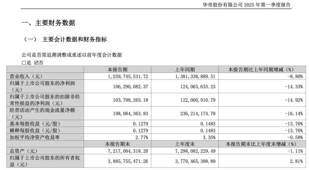 2025年第一季度,“廚電行業第一股”華帝股份交出的“成績單”有點難看。