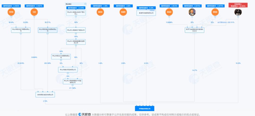 天眼查顯示,潘葉江共持有華帝股份15.403%股權,潘權枝、潘垣枝、潘錦枝合計持股比例不到10%,合計不足30%,華帝股份的股權依然分散。