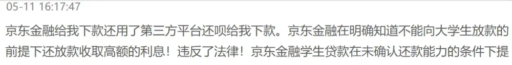妙投還在黑貓投訴平台上發現了近期有超過5000個大學生因網貸維權的案例,維權對象包括了分期樂、拍拍貸、度小滿、京東金融等知名平台。
