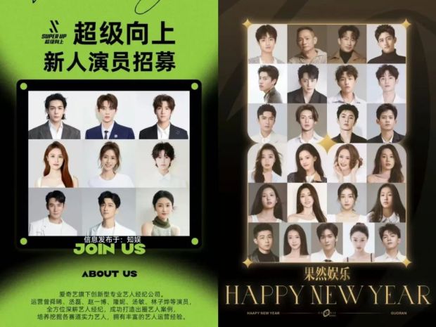 愛奇藝在經紀業務方面的佈局,最成熟也最透明。愛奇藝佔股90%以上的經紀公司有果然娛樂、超級向上、德漾娛樂,佔股較少的經紀公司有眾星時代、多萌文化。
