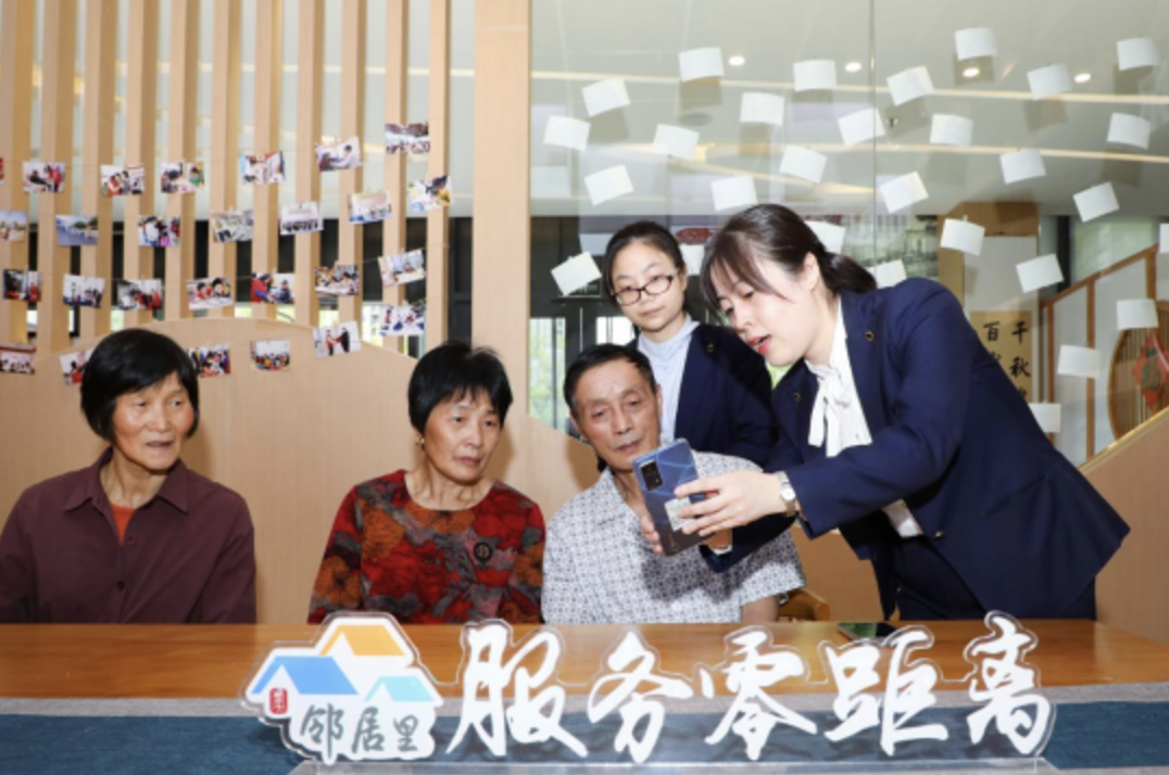 中國移動工作人員正在為老年人科普手機營業廳APP使用界面