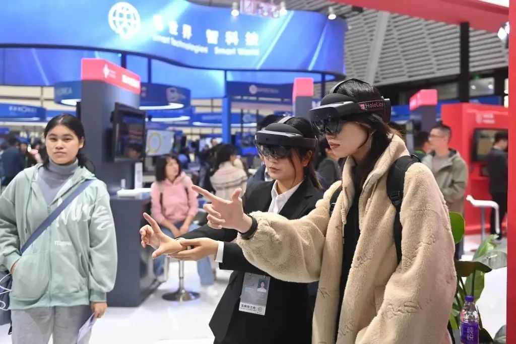 2024年世界互聯網大會“互聯網之光”博覽會上,觀眾在工作人員的指導下體驗操作一款全息智能醫學影像系統