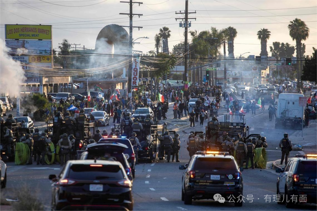 可是,當混亂的場景在美國本土上演時,他們卻完全換了一副嘴臉、慌了手腳。更何況,這次洛杉磯的事件和當年的暴力事件性質完全不同,美國警方和國民警衞隊的做派和香港警方專業剋制的操作也完全不同,當地民眾只是希望對移民政策和平表達意見,卻遭到了催淚彈、橡皮子彈等暴力手段的鎮壓。