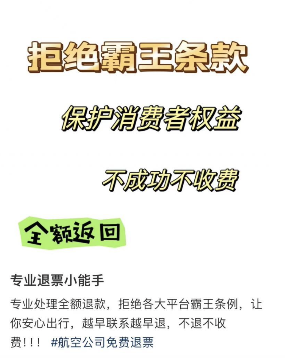 有網友在社交平台吐槽自己因事取消航班要損失很多錢,在聽説不少二手平台提供“免手續費全額退機票”的服務,她在嘗試購買服務後的確收到了航司退回的機票全款,但後來她才知道很多商家是用購票人“已死亡”的理由向航司提出申請的。真的太離譜了!