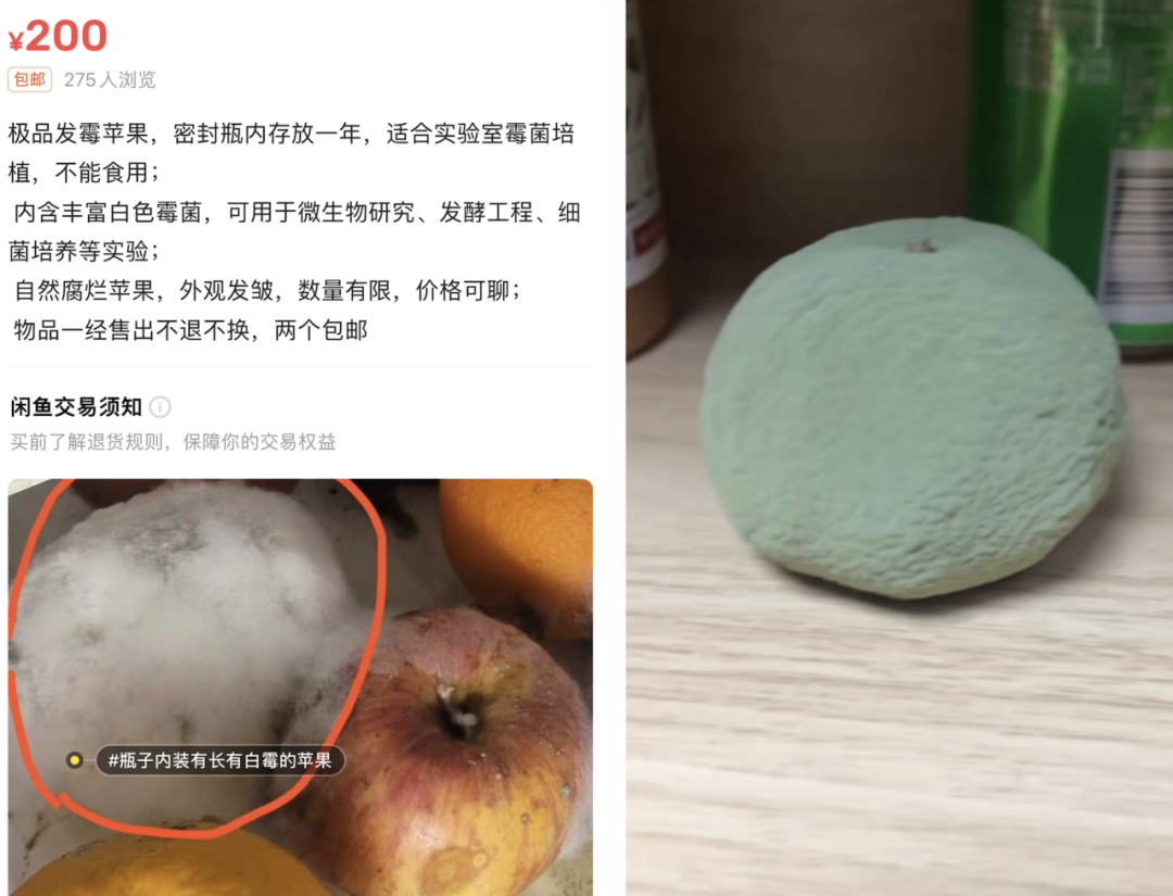 比如,生物系的學生需要特定菌種做實驗,而實驗室培養的菌株可能難以存活,但在二手平台上卻能找到各種"野生"樣本——發黴的麪包、發芽的土豆、變質的蔬菜,這些在日常生活中被嫌棄的東西,在專業人士眼中卻是難得的實驗材料。