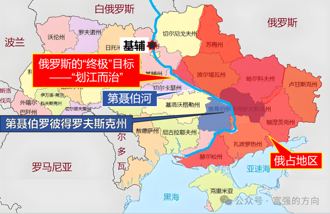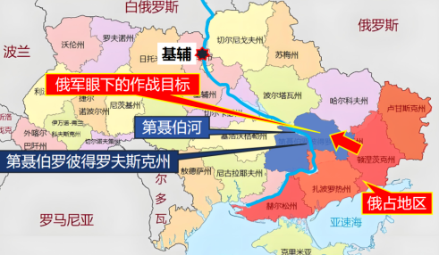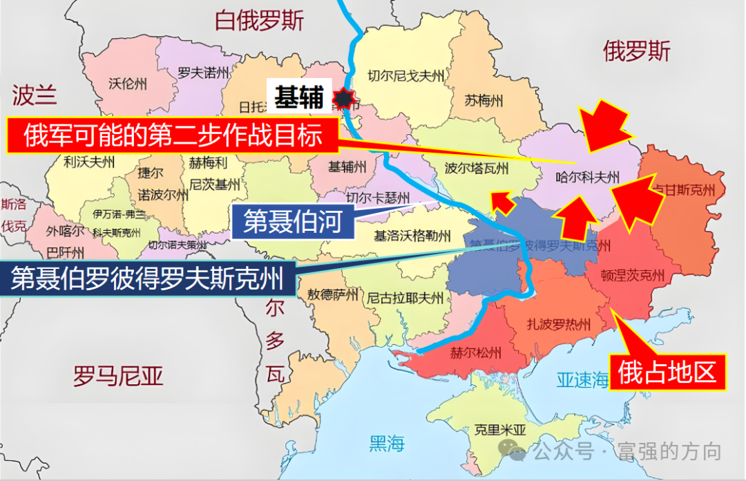 是第聶伯河左岸地區的第聶伯羅彼得羅夫斯克、哈爾科夫、蘇梅、波爾塔瓦四個州,甚至還可能會推進切爾厄尼戈夫州,利用第聶伯河把烏克蘭首都基輔一分為二。最終形成利用第聶伯河把烏克蘭一分為二,劃江而治的格局。