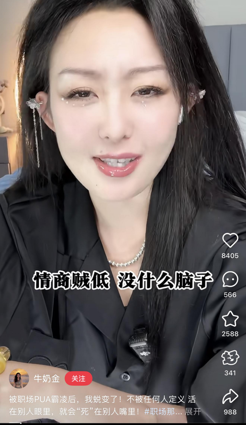 有一次牛奶金在會議上提出不同意見後,這位領導摔門而去,從此在會上都假裝看不到她。