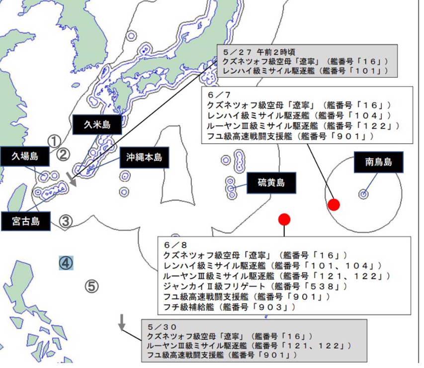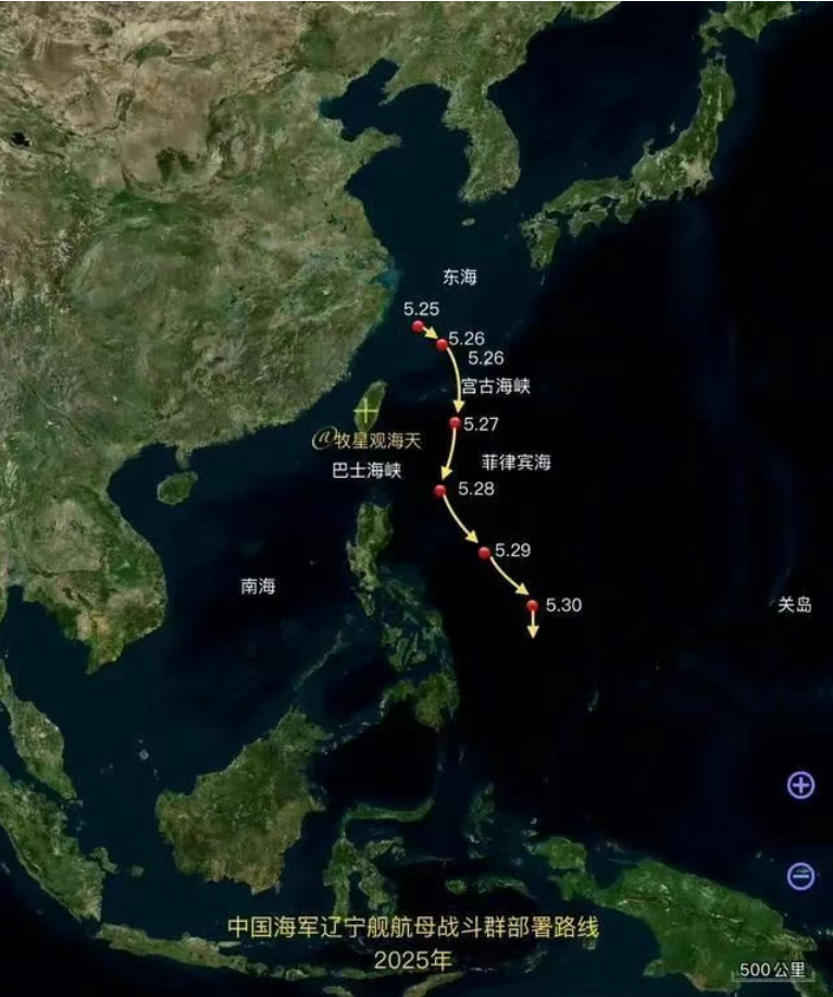 日本方面的追蹤記錄顯示,5月30日,遼寧艦編隊已經位於菲律賓海東部,並持續向南,“這一行動標誌着遼寧艦航母在部署中航行到西太平洋的最遠距離”。此後日本防衞省不再公佈遼寧艦的行蹤,顯然該航母已經脱離了自衞隊的追蹤範圍。