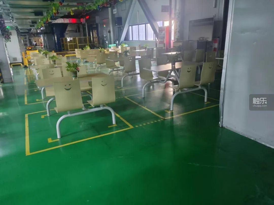 工廠的員工休息區,不遠處是課長(線長的領導)等級別人員的工位