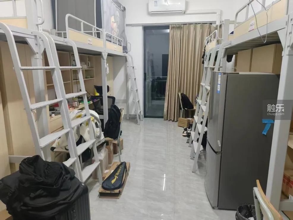 新基地員工宿舍,配備冰箱、洗衣機,標準6人間,普工6人居住,應屆生4人居住,職級越高居住的人越少