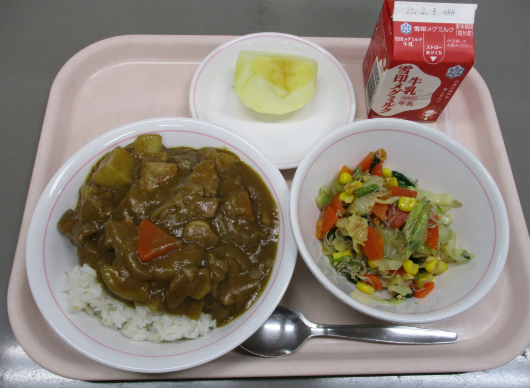 主菜的炸雞塊雖然只有一塊,但其重量約為60克,熱量高達155千卡,相當於普通雞塊的兩倍大小。市教育委員會的野原健也解釋稱,這種做法其實是出於操作的簡便與效率考慮,通過提供一塊較大的雞塊來減少調味和油炸的人工成本,這種安排從昭和年代便已存在至今。