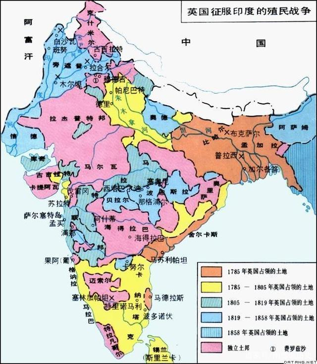 俄國進入中亞,英國以孟加拉為基地,在南亞大肆擴張。1847年,英國擊敗塔爾普爾王朝,將信德地區併入英屬印度,旁遮普人和俾路支人也相繼被英國征服。到1850年代,英國基本統一南亞。