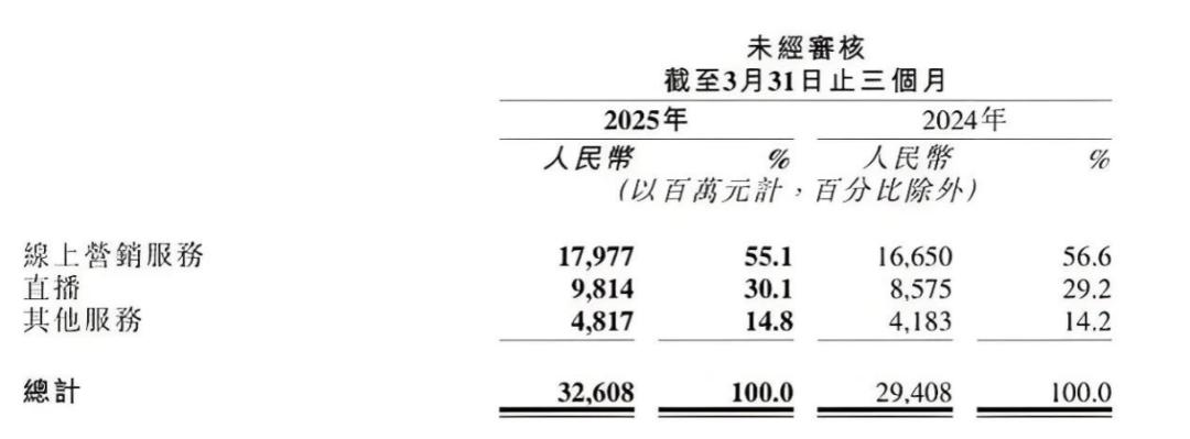 可靈的出現也為近年越發乏善可陳的快手帶來了新的想象空間。今年一季度,快手線上營銷服務、直播和其他服務(含電商)三大業務收入約為180億元、98億元、48億元,分別同比增長8%、14.4%、15.2%。