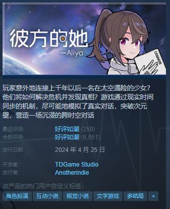 《彼方的她-Aliya》是大學生團隊創作的作品,雖然不能算傳統意義上的Galgame,但我覺得在文字遊戲這方面,它確實做得很不錯