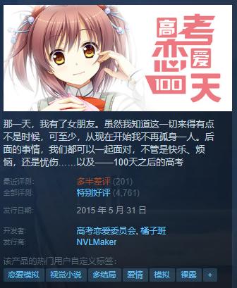 如果你有留意過國產Galgame(以下簡稱:國G)這個小圈子,那我猜你多半聽説過一部作品叫《高考戀愛100天》(以下簡稱:《高戀》)。