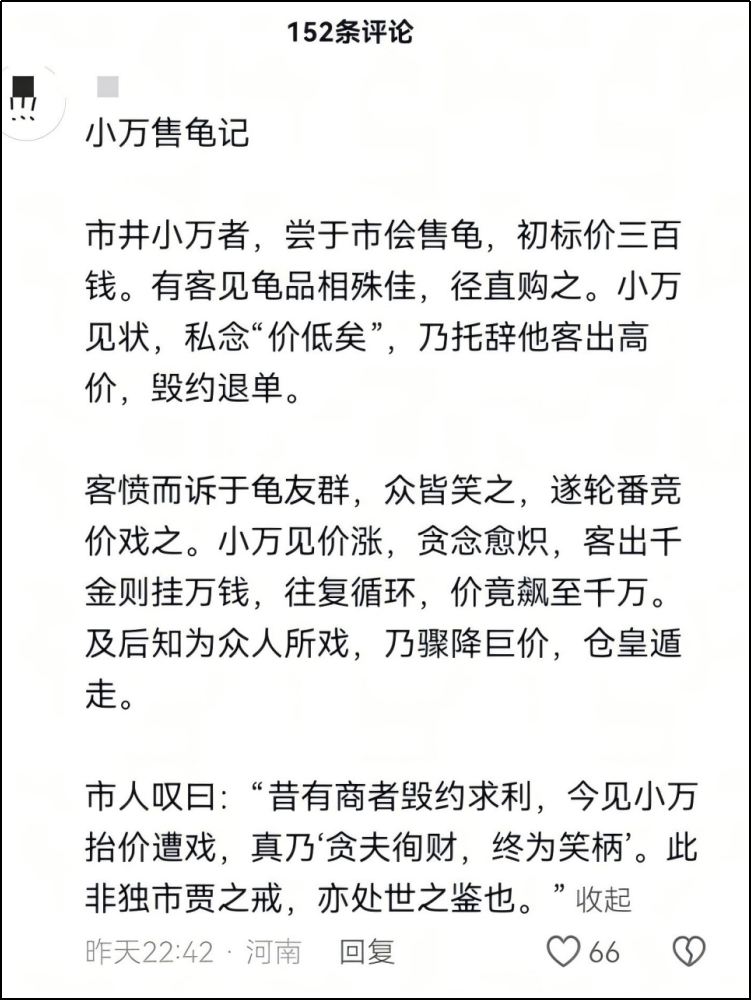 於是乎,就這麼一隻原價500元的公龜,硬是被抬價到了38萬元。