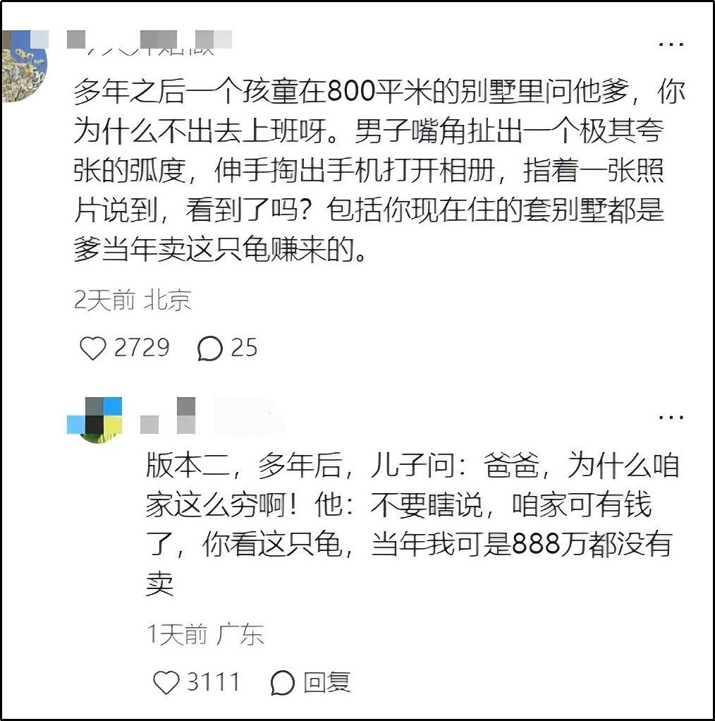 有網友表示“萬一哪個冤大頭,看到麝香龜突然漲價這麼多,真的買了咋辦?”
