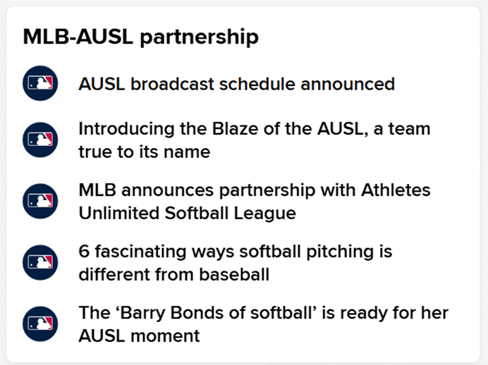 相信很快,AUSL的女壘球員,將和大谷翔平、阿隆·賈奇那些優秀男性職業棒球選手一樣,能看到自己比賽的驚豔瞬間登上MLB的平台,並收穫萬千球迷注目。