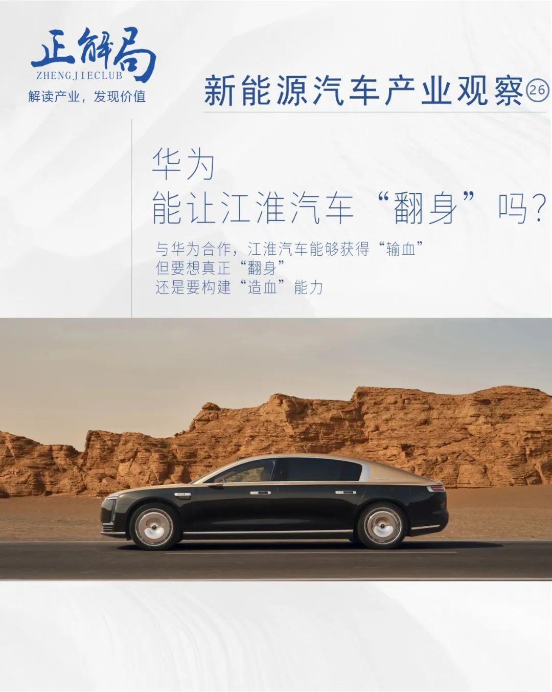 在正解局看來,與華為合作,江淮汽車能夠獲得“輸血”,但要想真正“翻身”,還是要構建“造血”能力。
