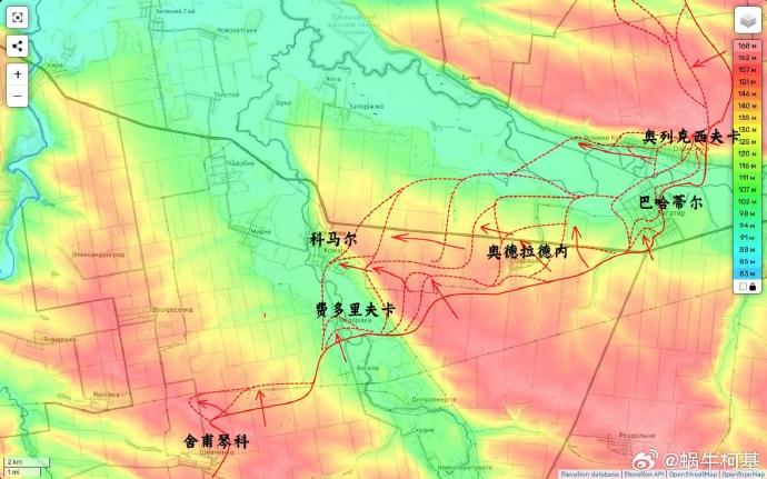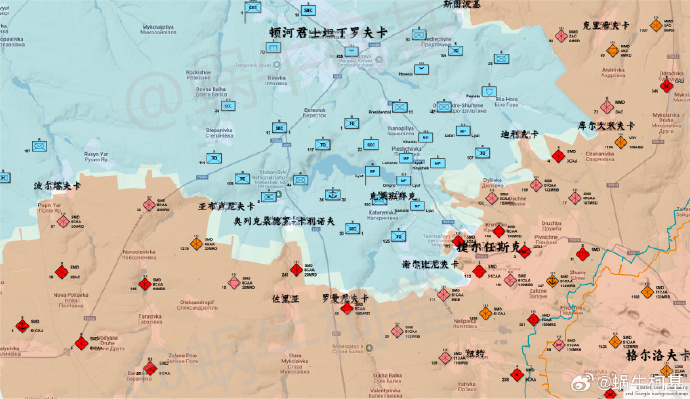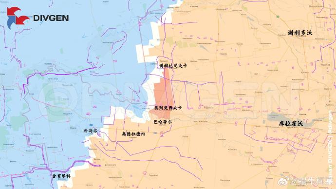 南哥更新了捷爾任斯克西北和奧列克西夫卡+科馬爾的進展,請注意他的線包括爭奪區