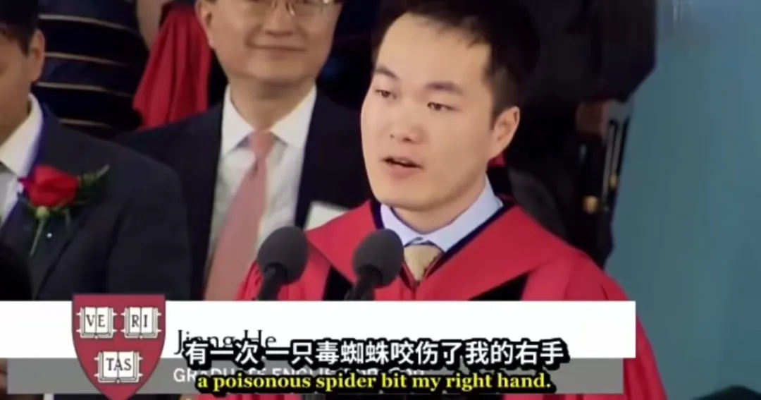 2016年,何江曾作為學生代表在哈佛大學畢業典禮上致辭,也是登上這個演講台的第一位中國人。他來自湖南農村的一個普通農民家庭,1988年他出生時村裏才開始通電。何江從這個小村莊起步,考上了中國科學技術大學,又到美國的頂級學府讀博,走到了更廣闊的世界中,完成了令人驚訝的跨越。