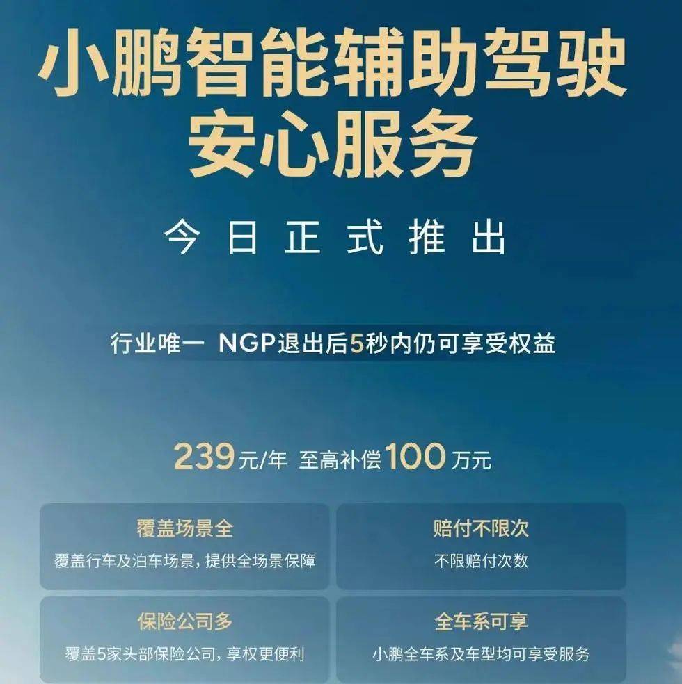 4月28日,小鵬汽車正式推出了“小鵬智能輔助駕駛安心服務”。239元/年,最高補償100萬元;