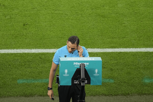作為近十年來足球規則演進的重要節點,VAR技術自2016年起陸續在主流大賽中落地。2024年,海信成為歐洲盃歷史上首個VAR顯示官方合作伙伴,負責為VAR裁判室及場邊提供專用顯示終端設備,成為賽事運行中不可或缺的技術力量。