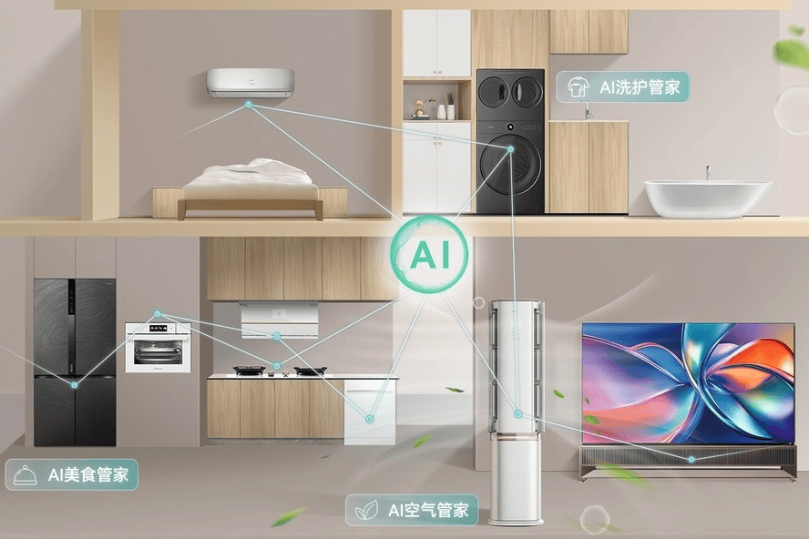 為此,海信啓動了「AI足球家庭煥新計劃」:從過去僅僅是一台電視的觀賽工具,升級為一個沉浸式、智能化的「球景房」。這一概念不止是硬件組合的升級,更是圍繞AI顯示、AI空氣、AI美食、AI洗護等家庭生活場景,打造業內首個「AI全景世俱杯」空間。