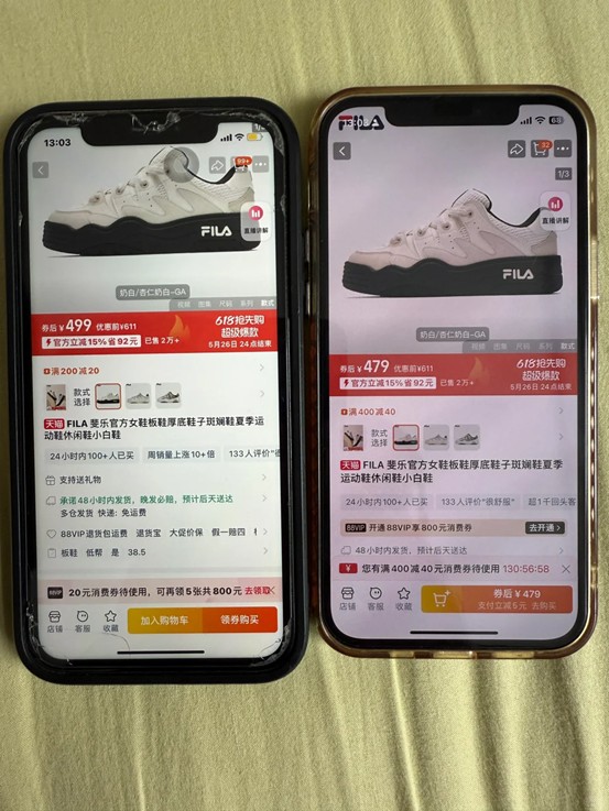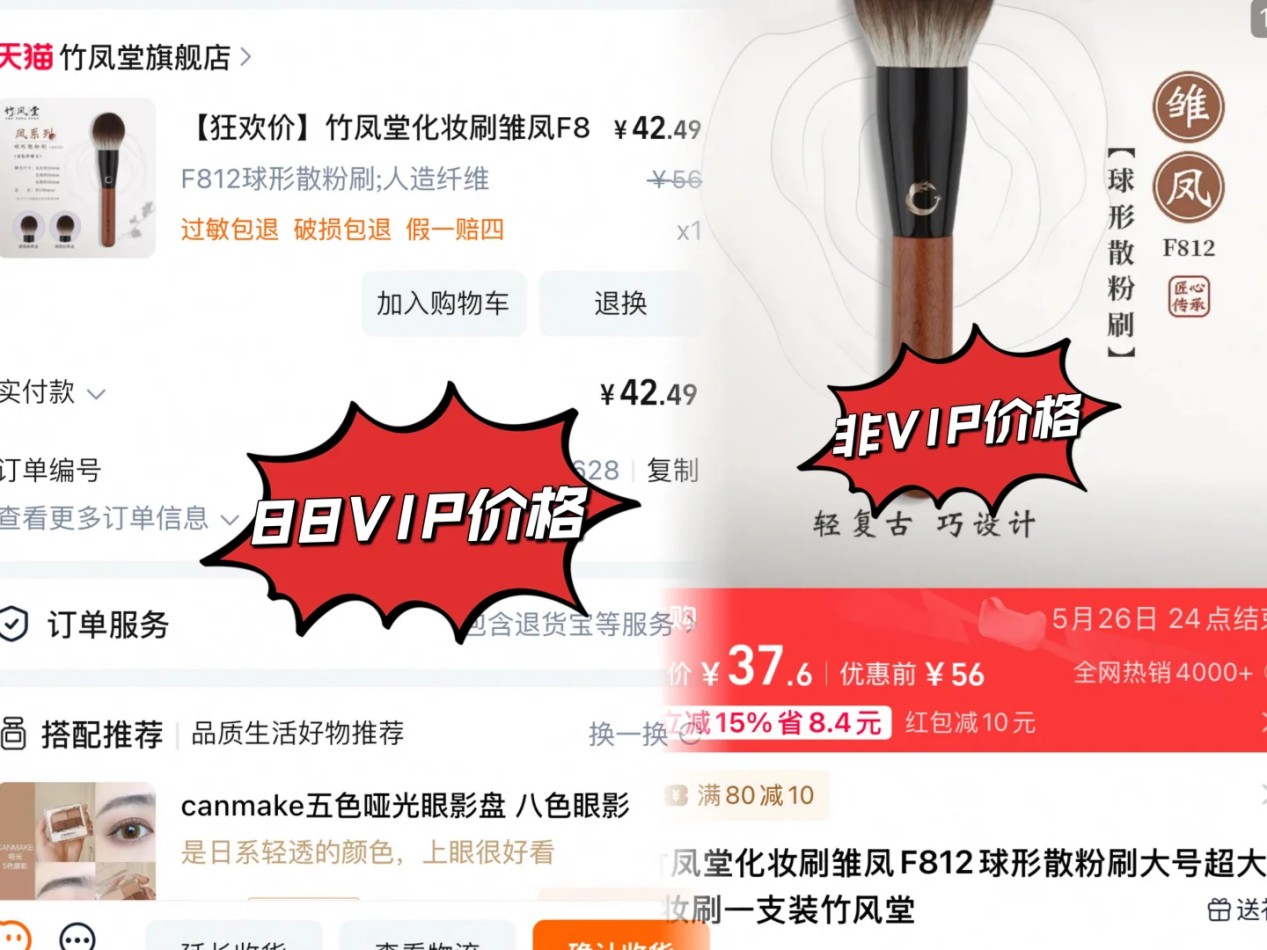 (同一商品88VIP用户價格(左)與普通用户(右)對比)