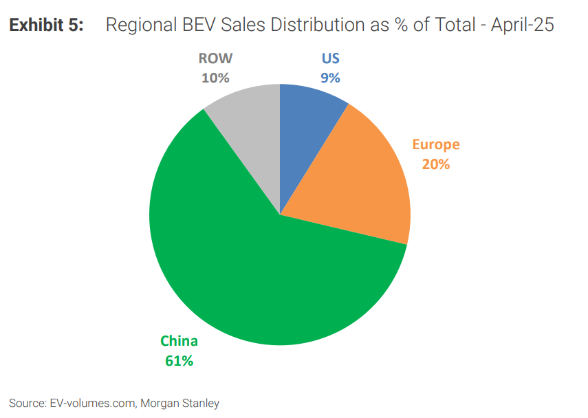 中國電車的系統性勝利根據大摩追蹤的2025年4月全球電車市場銷售數據報告,從全球各地區銷量,電車製造商排名、最暢銷電動車型和電池技術等方面來看,這是中國電動車的系統性勝利。