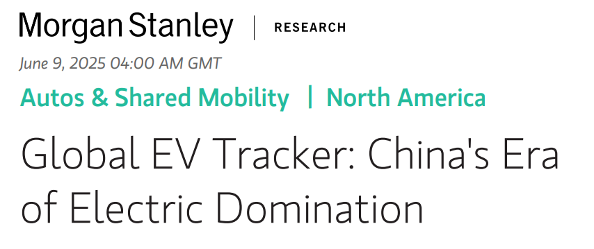 摩根士丹利分析師Adam Jonas在報告中指出,全球電動車市場正在經歷"中國主導時代"。這不是簡單的市場週期性調整,而是產業格局的根本性重構。中國品牌不僅在銷量上全面壓制傳統巨頭,更在技術創新和成本控制上建立了難以逾越的護城河。
