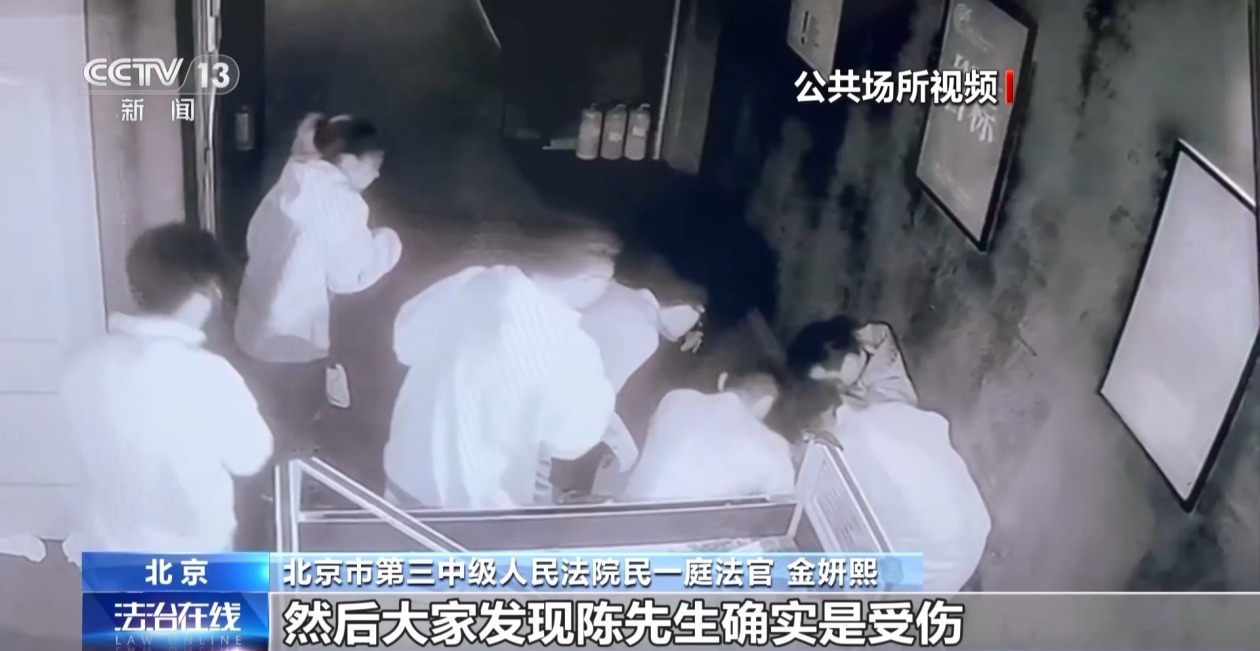 北京市第三中級人民法院民一庭法官 金妍熙:其他參與者都圍上來,大家發現陳先生確實受傷不能移動了。遊戲的經營者也馬上趕到現場,帶着陳先生去醫院看了急診,陳先生的腹部被玻璃扎傷了。