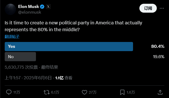巧合的是,參與投票的563萬人中,支持馬斯克這個想法也接近80%。