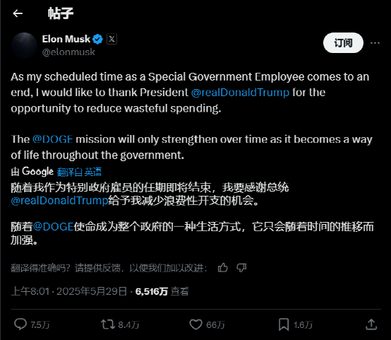 外界普遍認為,官場不得志的馬斯克,走下“狗王”王座後,肯定會重住公司保業績,但從馬斯克6月6日發佈的帖子來看,他的“狗王夢”明顯沒有結束。